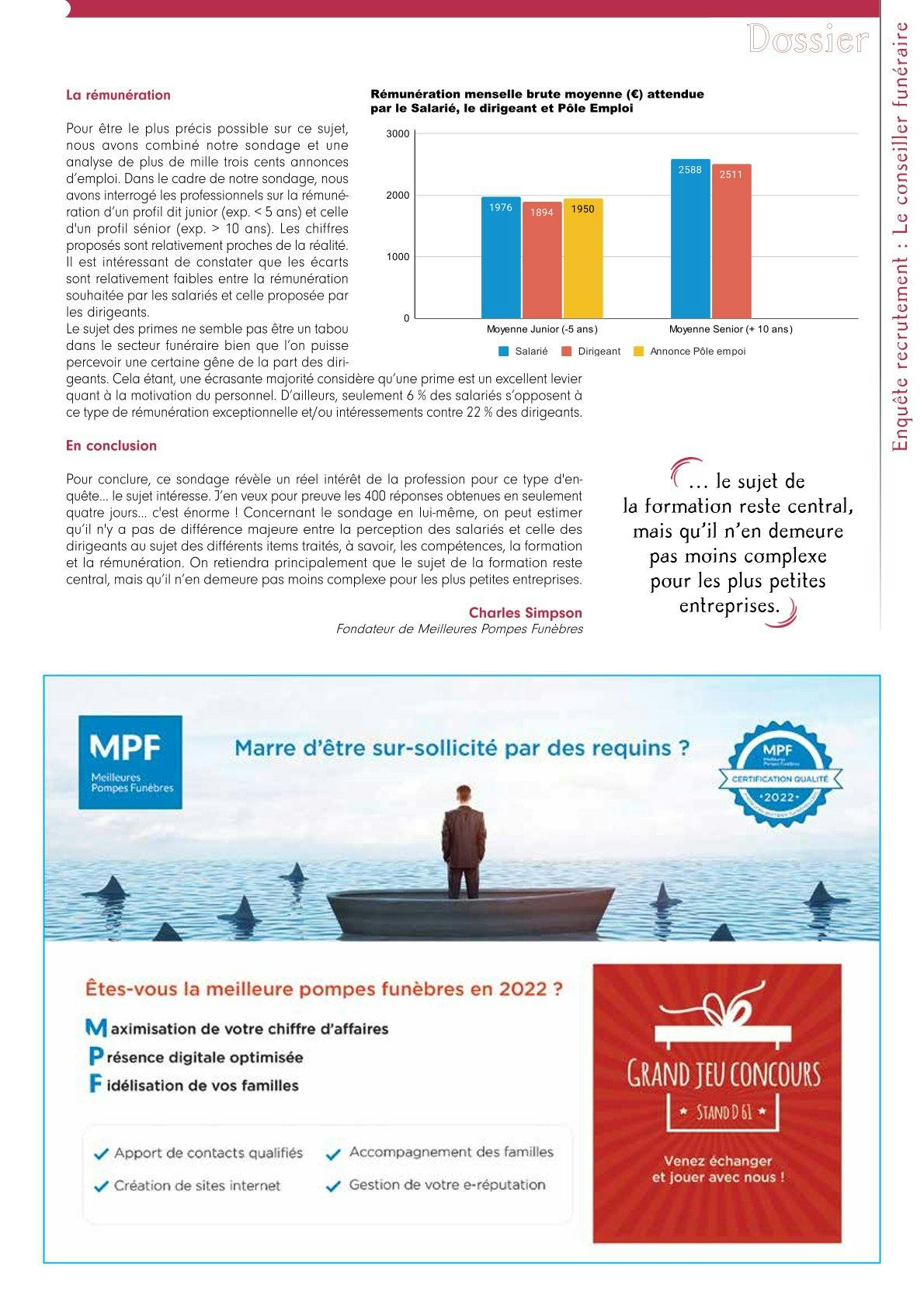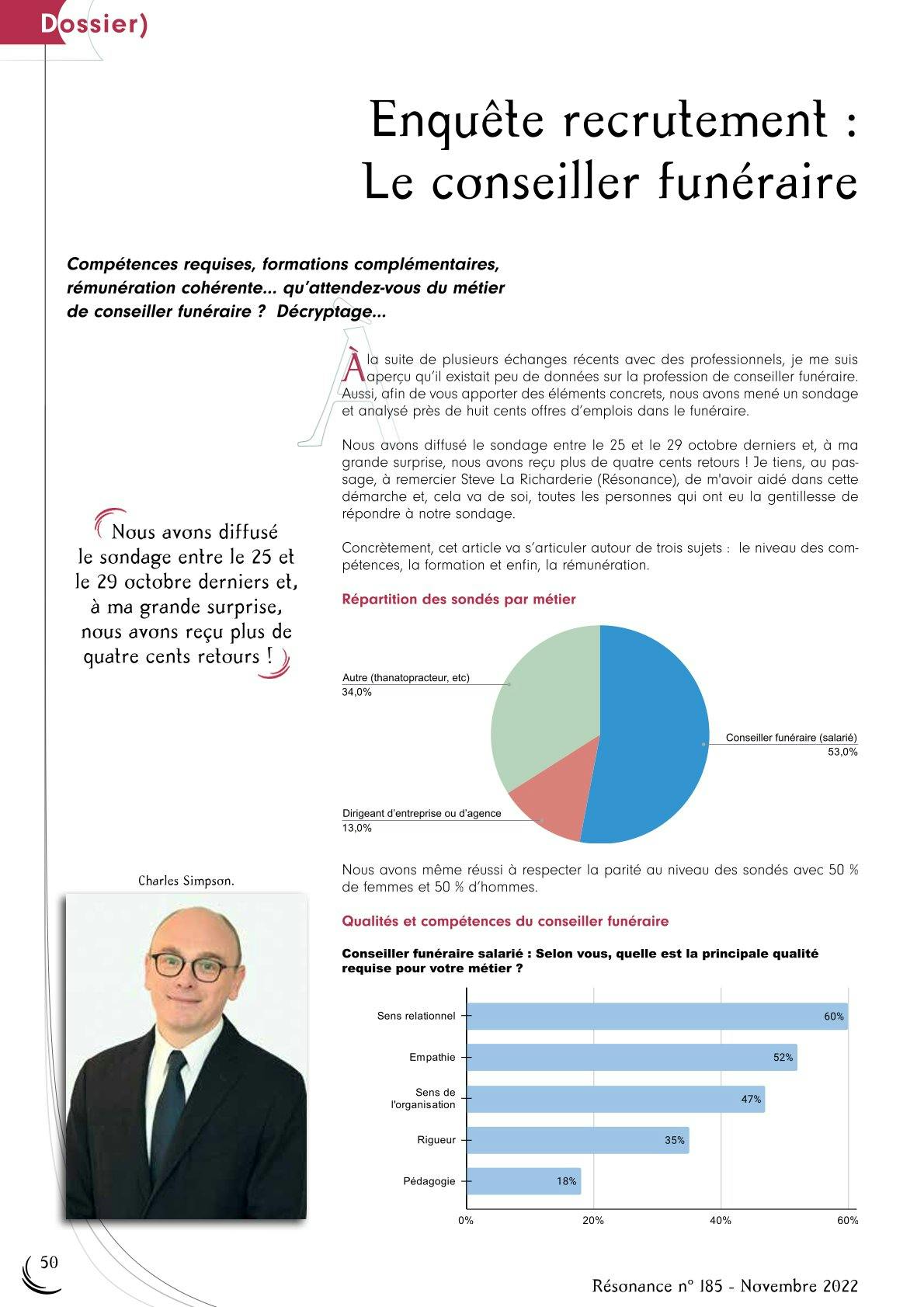 En octobre 2022, la revue spécialisée Résonance funéraire a publié une enquête que nous avions menée sur les conseillers funéraires : leur métier, leur rémunération, la façon dont ils sont perçus... Découvrez cet article et téléchargez-le ci-dessous !