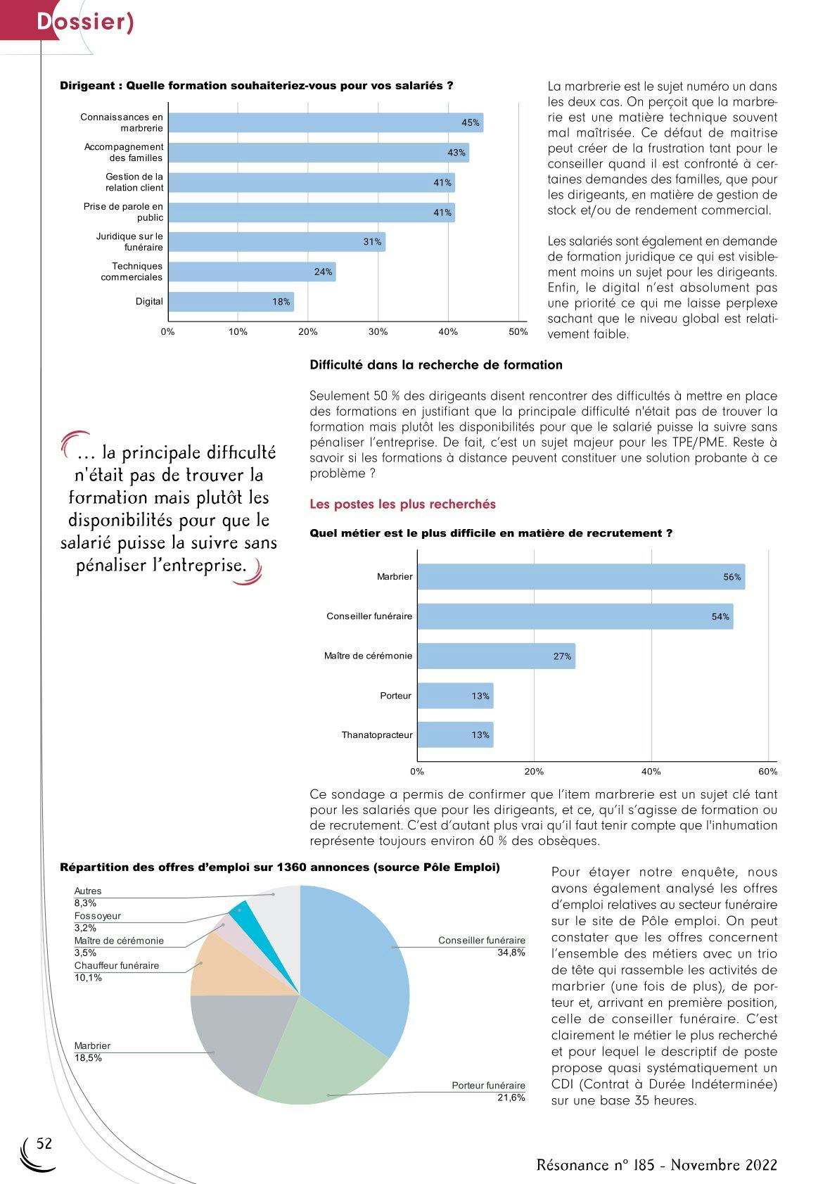 Telecharger la version PDF.À la suite de plusieurs échanges récents avec des professionnels, je me suis aperçu qu’il existait peu de données sur la profession de conseiller funéraire. Aussi, afin de vous apporter des éléments concrets, nous avons mené un sondage et analysé près de huit cents offres d’emplois dans le funéraire. Nous avons diffusé le sondage entre le 25 et le 29 octobre derniers et, à ma grande surprise, nous avons reçu plus de quatre cents retours ! Je tiens, au passage, à remercier Steve La Richarderie (Résonance), de m'avoir aidé dans cette démarche et, cela va de soi, toutes les personnes qui ont eu la gentillesse de répondre à notre sondage. Concrètement, cet article va s’articuler autour de trois sujets : le niveau des compétences, la formation et enfin, la rémunération.