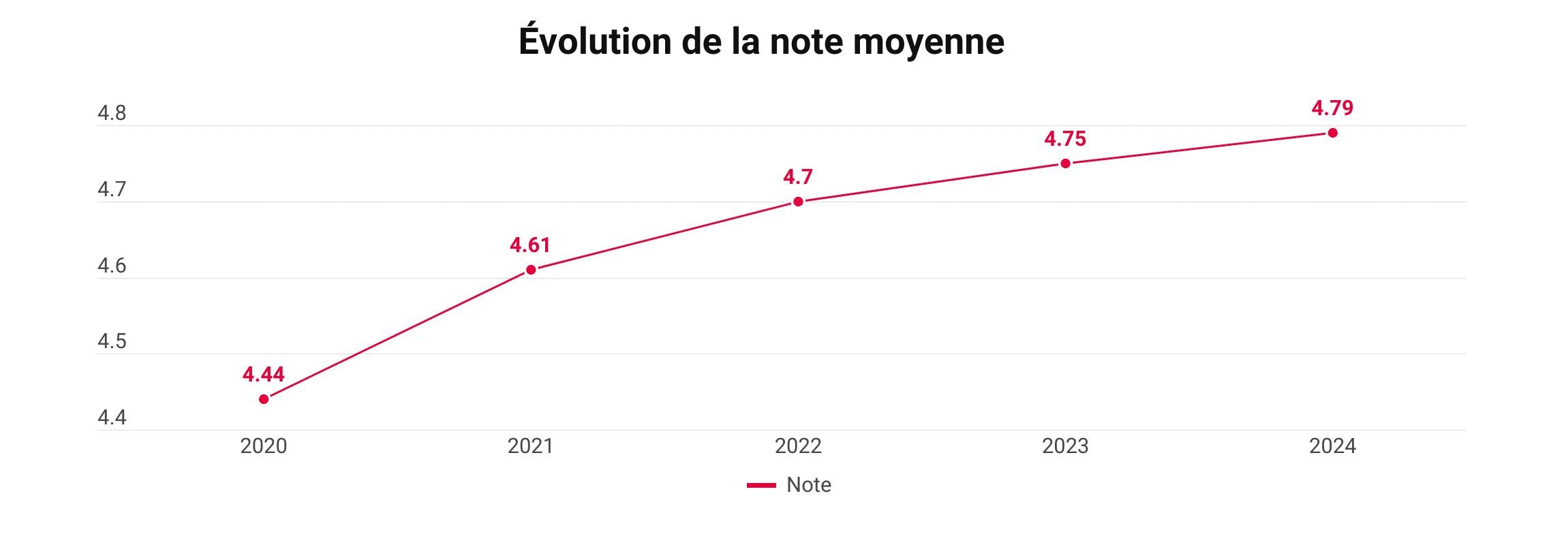 Si je mets tous les avis sur un graphique, c’est assez surprenant : on voit très peu de mauvaises notes. Contrairement à une note sur 10 ou 20, sur un barème à 5, la mauvaise note est entre 3 et 4, et les bonnes notes sont au-dessus de 4,5.