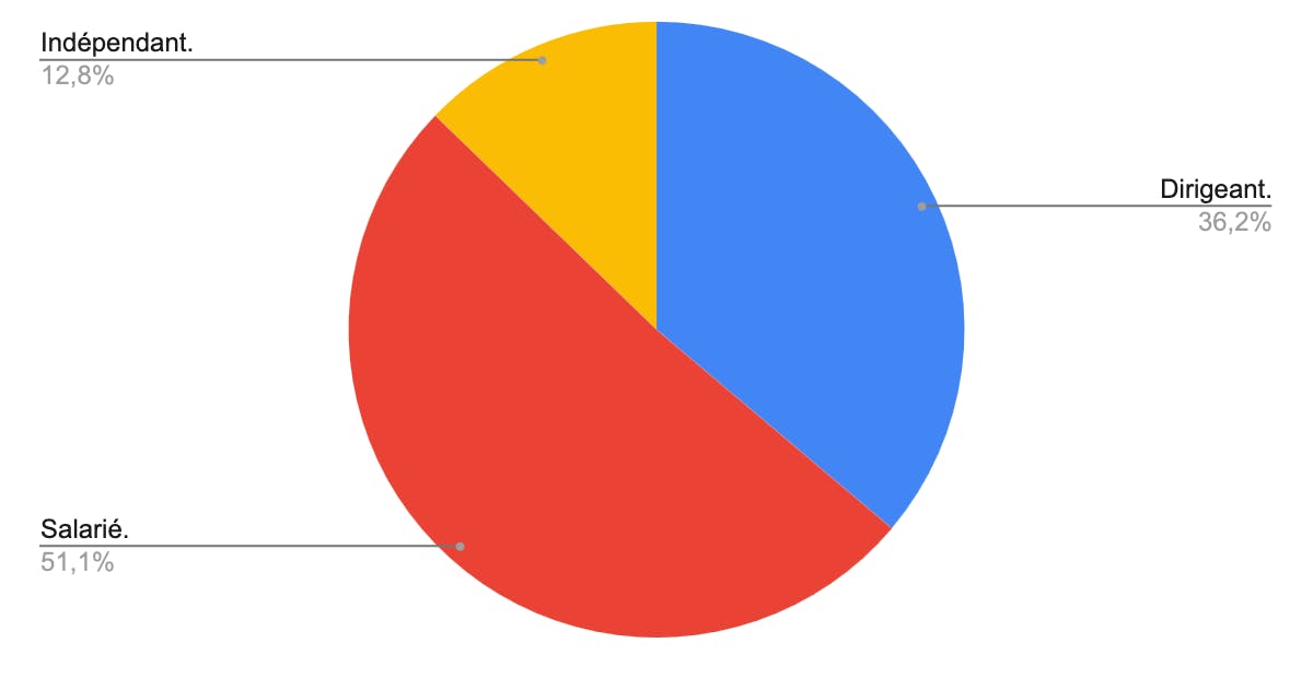 Afin de savoir qui étaient les personnes qui répondaient au sondage, j’ai naturellement posé la question. La réponse est assez équilibrée, avec une sur-représentation des patrons.