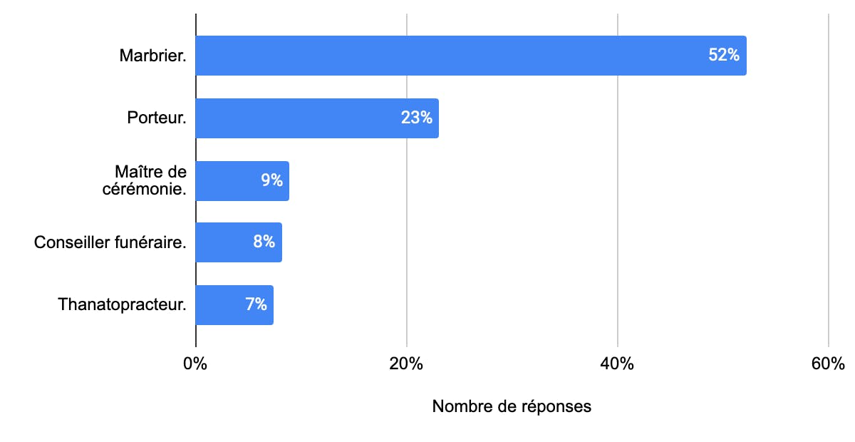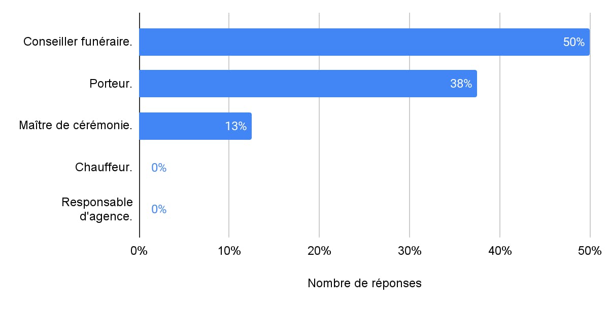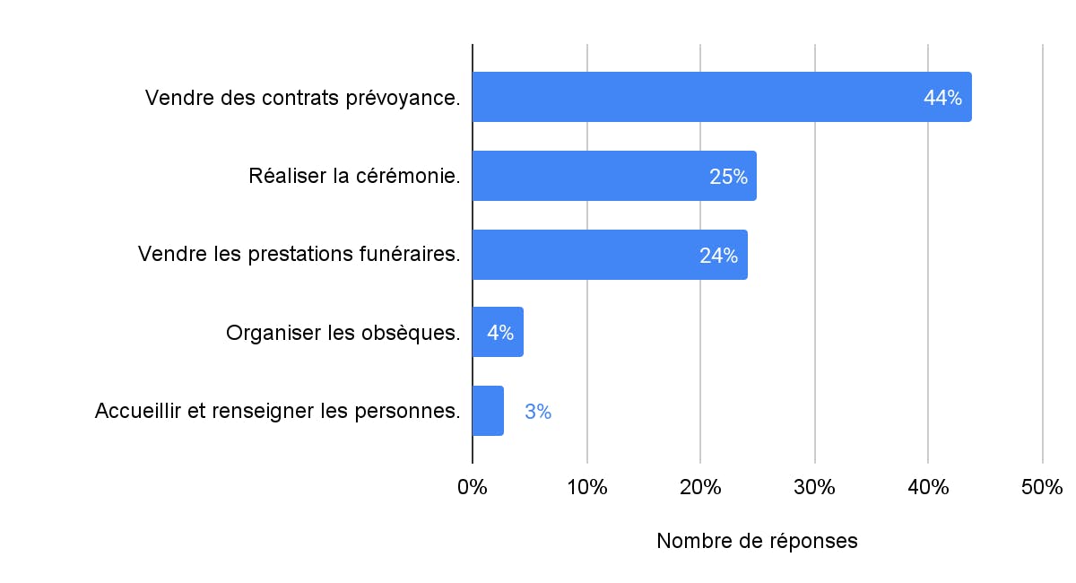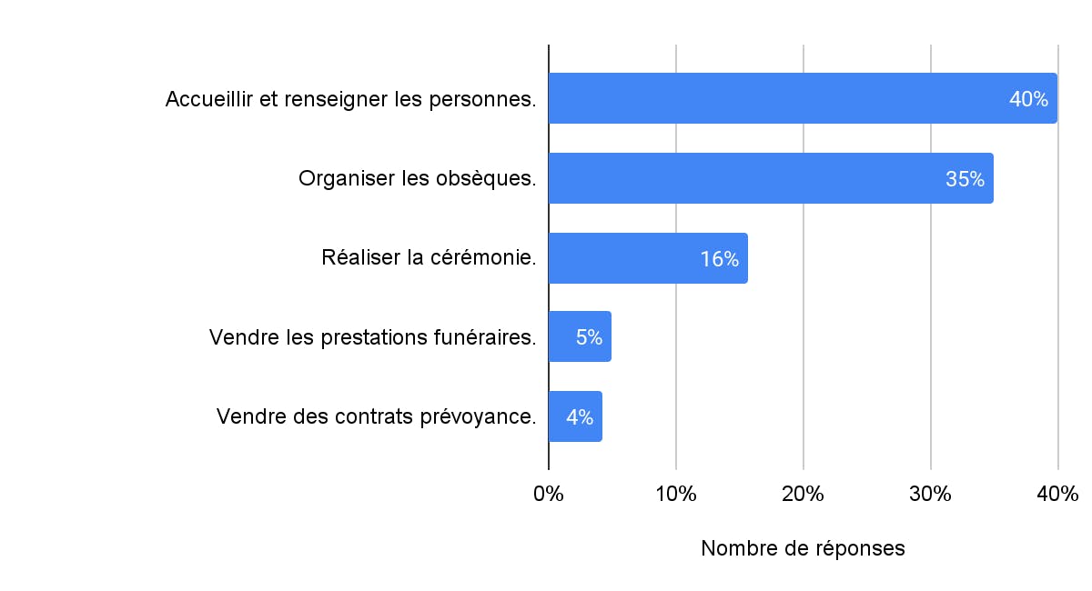 Cette question nous permet de confirmer que les métiers dans le funéraire sont orientés prioritairement vers le service à la personne. Les professionnels sont avant tout là pour aider les familles et pour les conseiller.