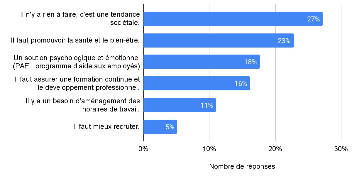 Comme pour les explications, les réponses sont multiples et aucune ne se distingue réellement. C'est le travail des ressources humaines d’apporter les réponses les plus adaptées selon les entreprises.